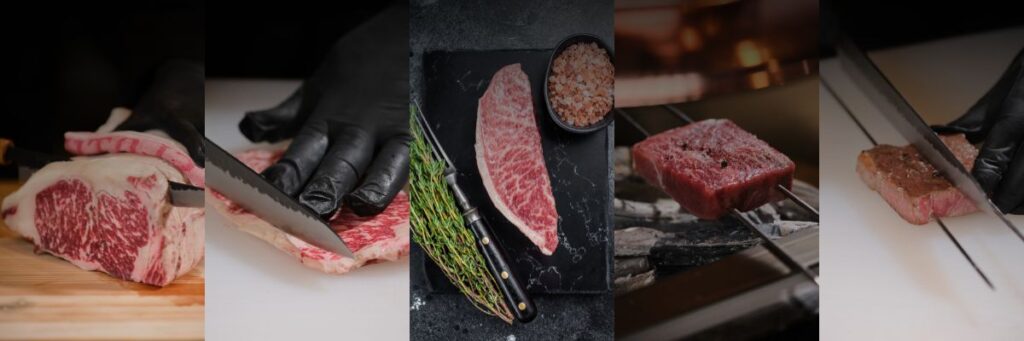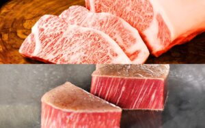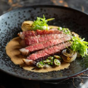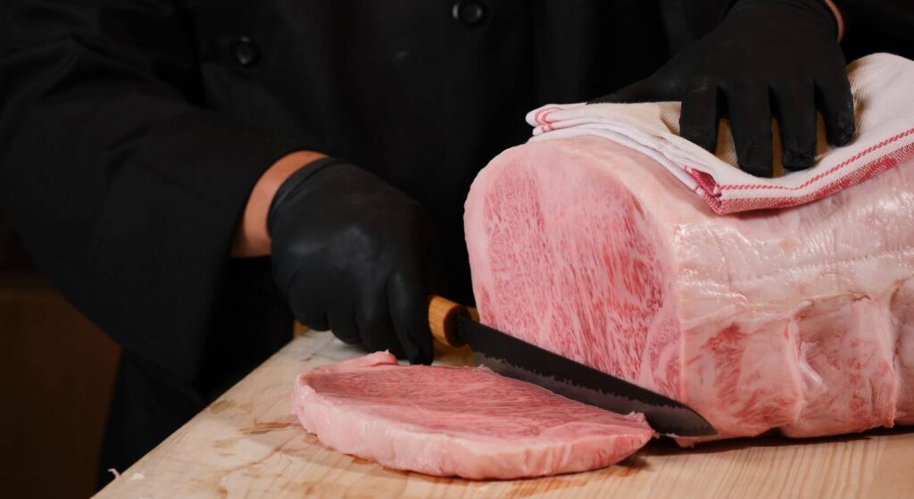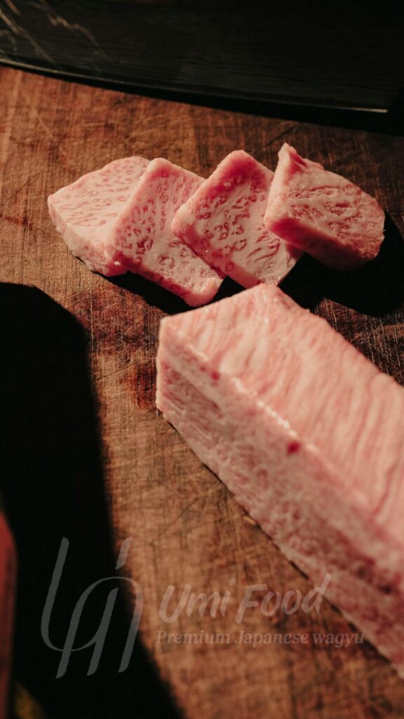 Triploin (thăn ngoại) bò Wagyu A5 Miyazaki là một trong những phần cuts cao cấp, đặc trưng bởi lớp vân mỡ cẩm thạch mềm mịn.